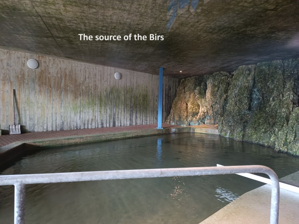 Just on the edge of town, as the trail ascends towards the countryside, is the Source de la Birse, the source of the Birs, that river that I have been following on this trail since leaving Basel. The source is fully enclosed in a building, which happened to be locked when I arrived. But through the glass, I could see the pool that is the source of this river, four days of walking from where it ours its water into the Rhein.