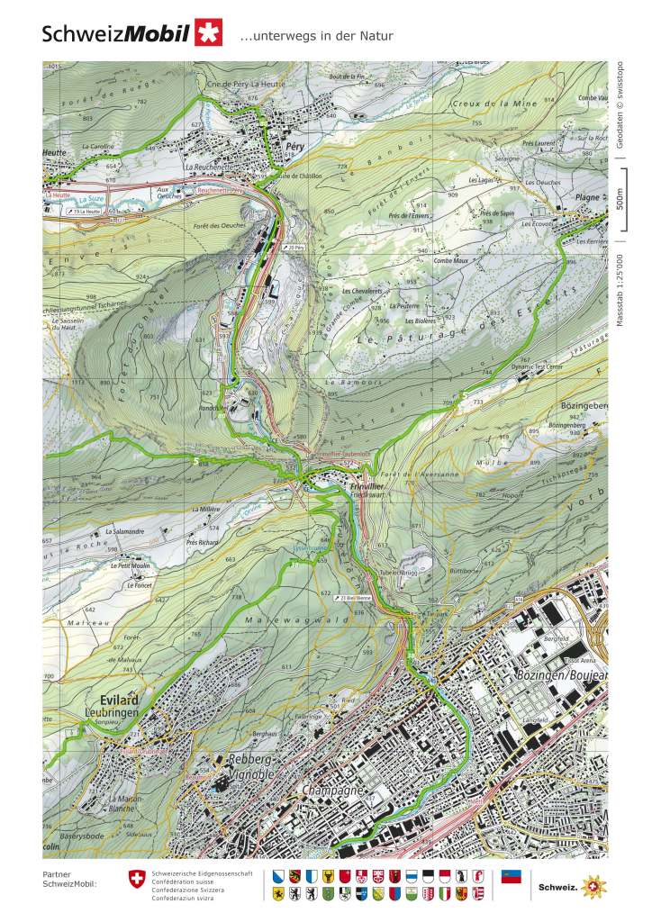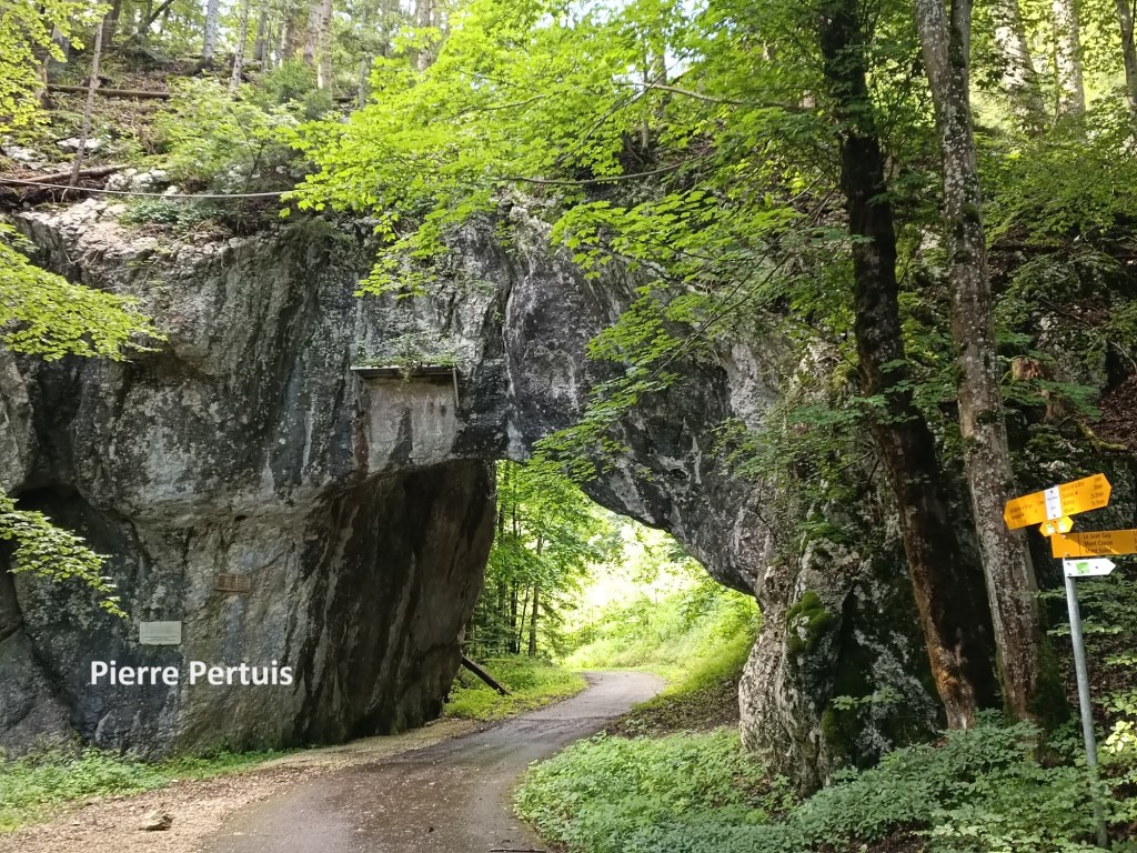 That allowed me to go on through the village of Péry. Strangely, the trail then goes through the cement works. It is strange that a walking trail would do that, but that is how it is. I went on. At Rondchâtel, the physical trail on the map does not match what is on the map, but the route is fairly clear, and I had no difficulty. And then I was into the Tubenloch