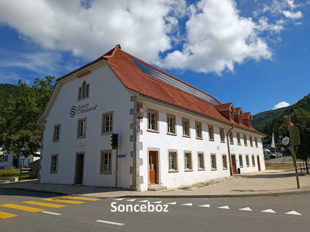 After going over the col, it was a long descent through the woods to Sonceboz. I met people out walking their dogs along the way, and we exchanged a cheery greeting as we passed. I went on through Sonceboz without stopping. That village is effectively joined to the adjacent village of Sombeval, to the point that they share a railway station that carries both names. The trail goes on into Sombeval, before doubling back. However, there is a short cut at the edge of Sombeval, and I took it, brining me back out into the countryside.