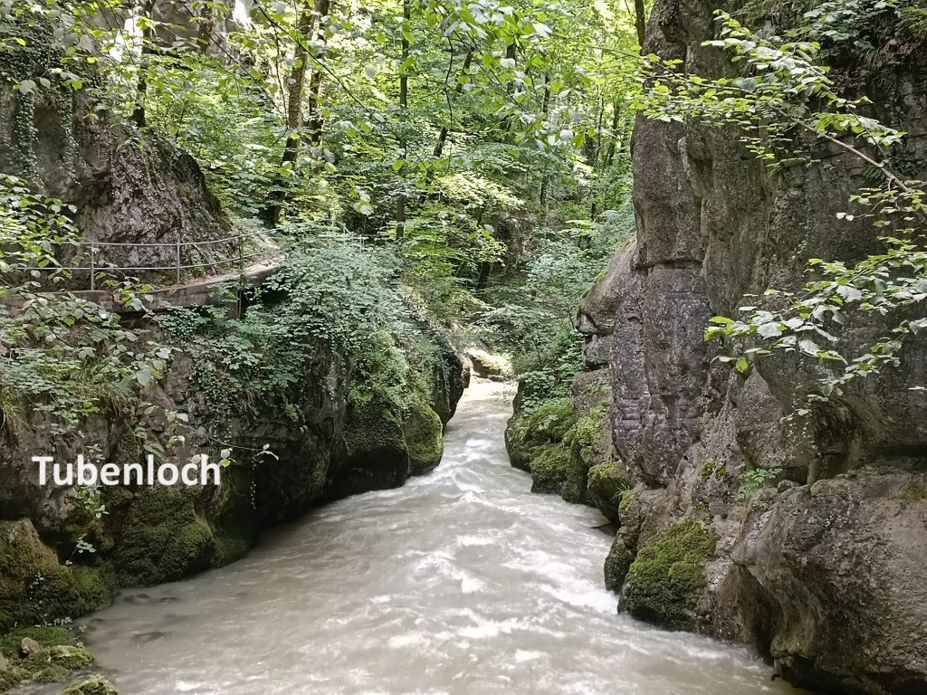 The gorge is marked on the map as Tubenloch. It is also called the Taubenloch in a lot of online tourist guides. However, I will follow the name used on the Swiss official map and call it Tubenloch. It is first mentioned in documents from the sixteenth century, though it is certain that the area has been known since Roman times. No one is certain where the name came from, and there are several theories as to its origin. And with the entry into the Tubenloch, I was once again coming into the German speaking part of Bern canton.