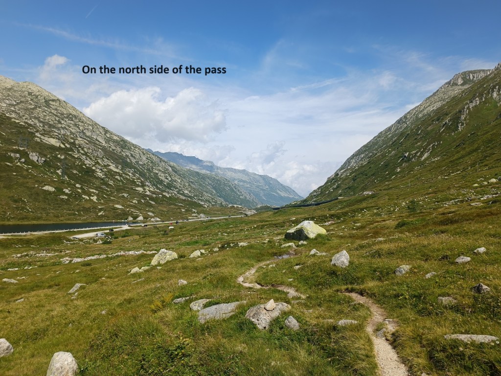After taking a little time to enjoy a hot dog and a beer, I was on my way again. The northern side of the pass is gentler than the southern side. Once again, the old roadway is the basis for the trail in many places. It was reported to have taken carriages, but I can only surmise that it must have been a very rough ride indeed over what are basically large stone cobbles.