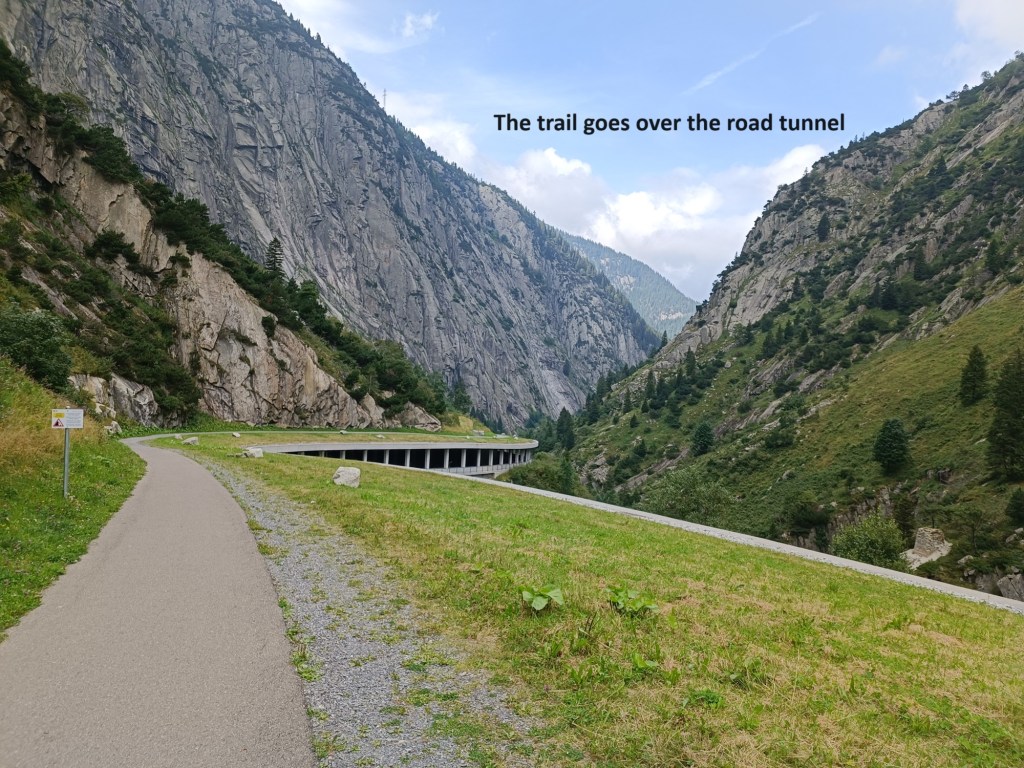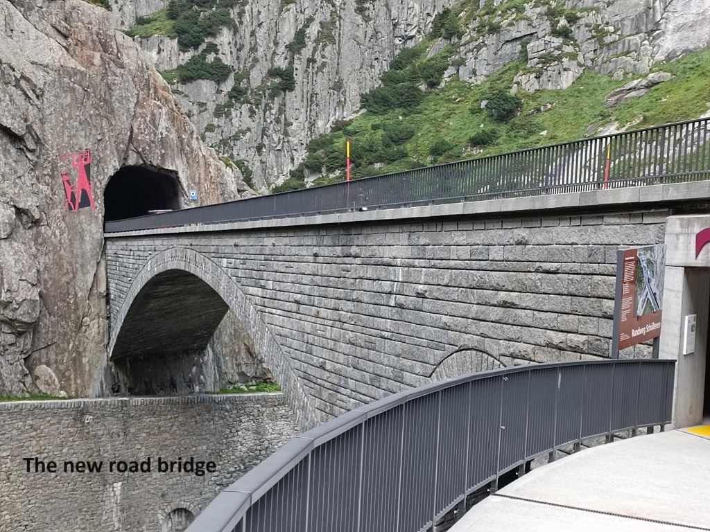 I continued on towards Göschenen. In the steep sided valley, the road, the railway, and the trail are all close together. It did not take long until I came to the Häderlisbrücke. This stone bridge was originally built in 1649. It was destroyed in a flood in 1987, and the current structure, a replica of the original, was built in 1991. That means that when the Irish Earls came this way in 1608, there was no bridge, but when Suvorov came down the valley in 1799, he almost certainly crossed that bridge.