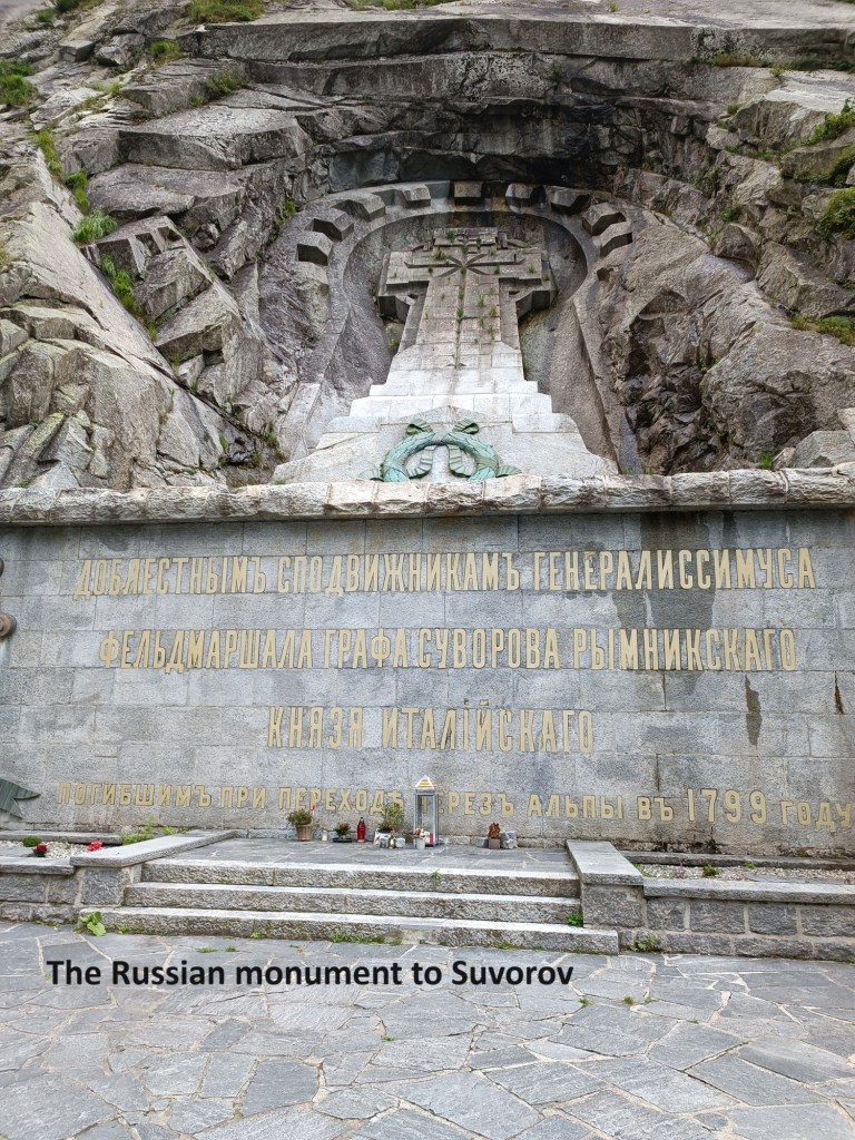 As I went on, I came to a much bigger monument commemorating Suvorov’s march. The Russians do much bigger monuments than the Irish. The Suvorov monument was the site of a visit to Switzerland by the then Russian president, Dmitri Medvedev, in 2009. In recent years, with growth of Russophobia in Europe, it has been vandalised.