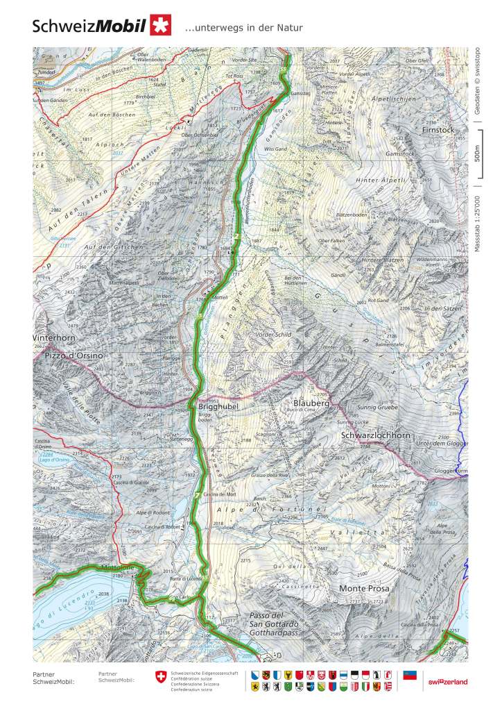 Suvorov’s march is commemorated in a trail that follows his route. The trail starts in Airolo and proceeds northwards to the pass. Today, the road to the Gotthard pass is popular with motorists, cyclists, and motorbikers. In Suvorov’s time, there was a kind of a road there, but today we would barely call it a trail, about three metres wide, and paved roughly with stone. Suvorov was supposed to have well over a thousand mules to carry supplies and provisions, but only just over seven hundred were delivered. The lack of supplies and provisions would dog the expedition later.