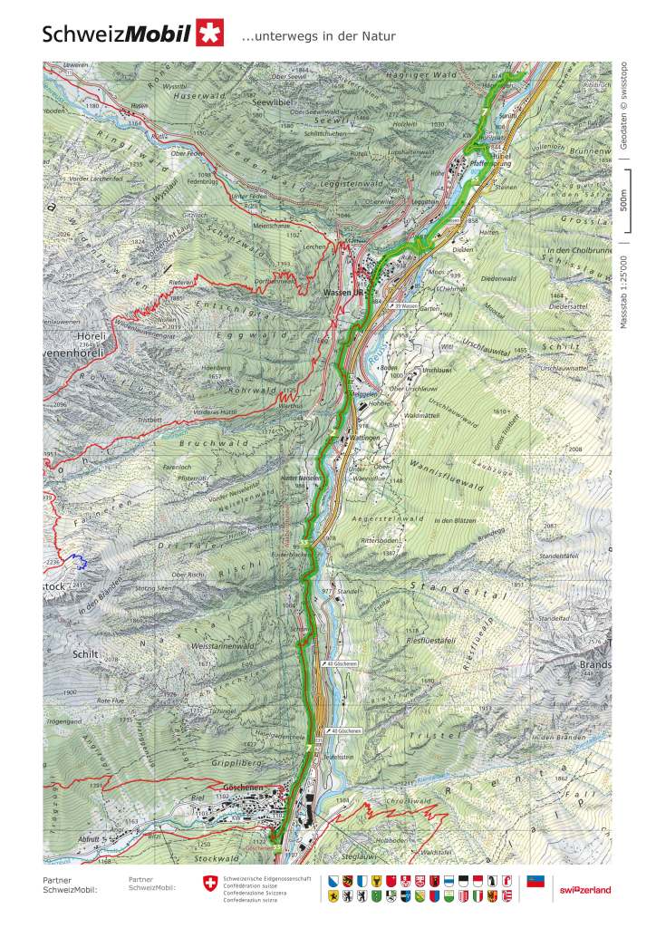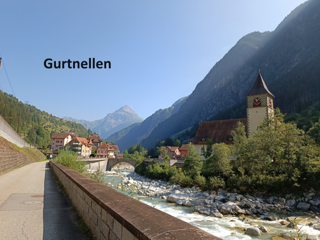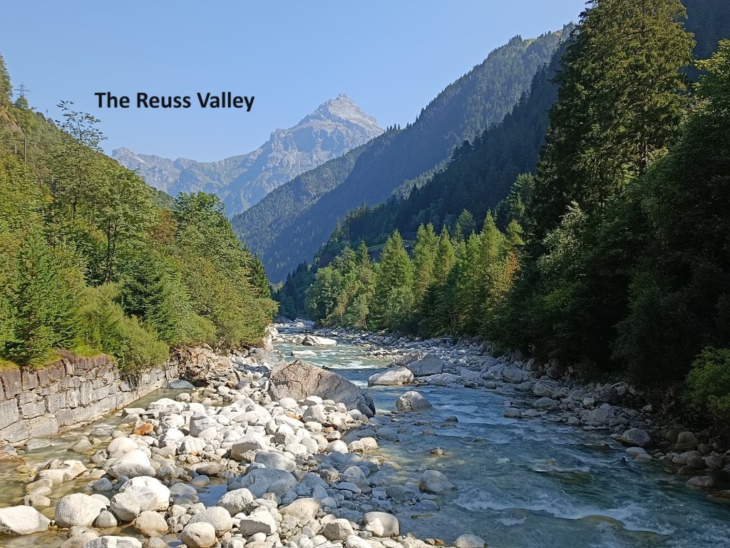 I did not take long to reach Wassen, with its little church, well known to rail travellers using the Gotthard route. The rail line going southwards snakes back and for the to climb the valley towards Göschenen, passing Wassen three times, and giving passengers a feeling of déjà vu as they see the church for a second and third time. I did not stop in Wassen, but kept on going. I passed the Wassen power station below the village and went on through Gurtnellen, all the time following the Reuss as it flows northwards.