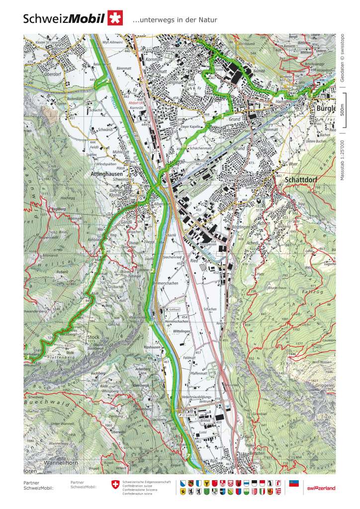 After Silenen, it did not take very long to reach Erstfeld. I found refreshment in the town and rested for a short time before going on to Altdorf. My route from Erstfeld to Altdorf was almost flat as it continued to follow the Reuss. There is one point where the mountains on the western wide come down almost into the river, and the trail has to go through a short tunnel in the rock. But apart from this it was uneventful. I did not go into the centre of Altdorf, but instead went directly to the railway station to begin the journey back to Basel.