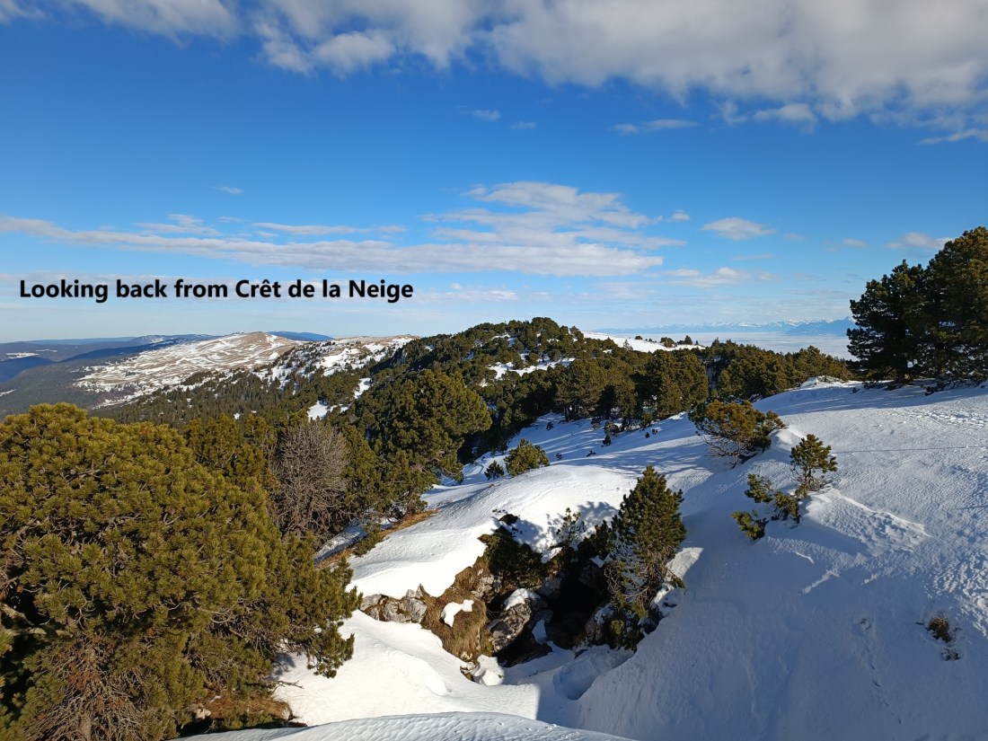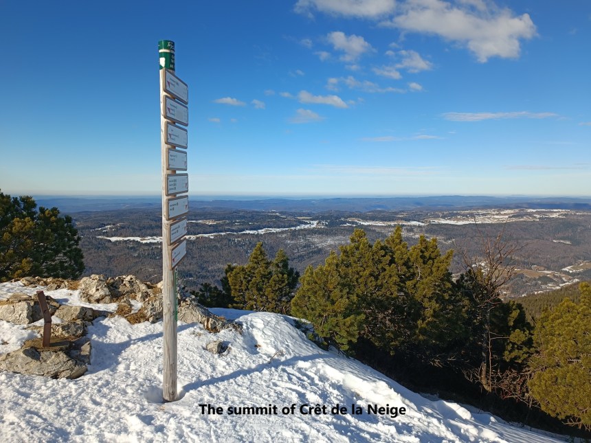 At 1720m in height, the Crêt de la Neige is the highest summit in the entire Jura range. But it is not in Switzerland, it is in France. It is fairly close to Geneva, but distant enough to make the logistics of getting there quite difficult. And I must confess that I allowed the logistical difficulties to be an excuse for procrastination. But sometimes an idea moves from a wish or desire to an intention, and I decided that 2025 would be the year when I would go to Crêt de la Neige. The name of the mountain, which when translated means Ridge of Snow, influenced me to go there in winter, and experience the snow.