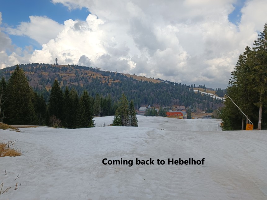 A train and two buses brought me to the little hamlet of Hebelhof, nestled just south of the Feldberg. As I got off the bus, I could see the snow still on the ski slopes above me.